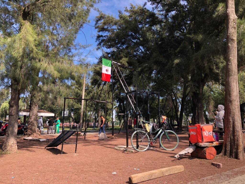 Entre árboles altos, tierra roja y el eco de las motos estacionadas, se levanta un espacio distinto: un gimnasio callejero, armado con tubos, barras y el ingenio del barrio. Aquí no hay mensualidades ni espejos gigantes, pero sí hay disciplina, sudor y la bandera mexicana ondeando como testigo de cada repetición. 🇲🇽💪