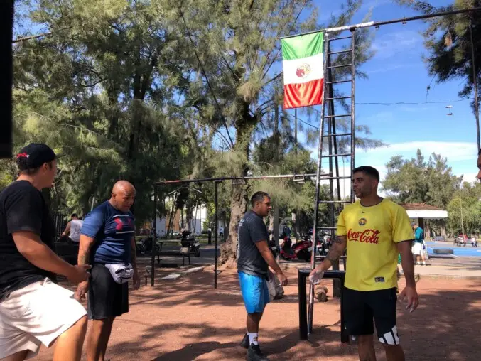 En este rincón de la ciudad, la banda se reúne todos los días para entrenar. Algunos llegan en bici, otros con el uniforme del trabajo, unos más cargando la mochila del día a día. La rutina es sencilla: barras, paralelas, dominadas. Nada de lujos, todo de corazón.